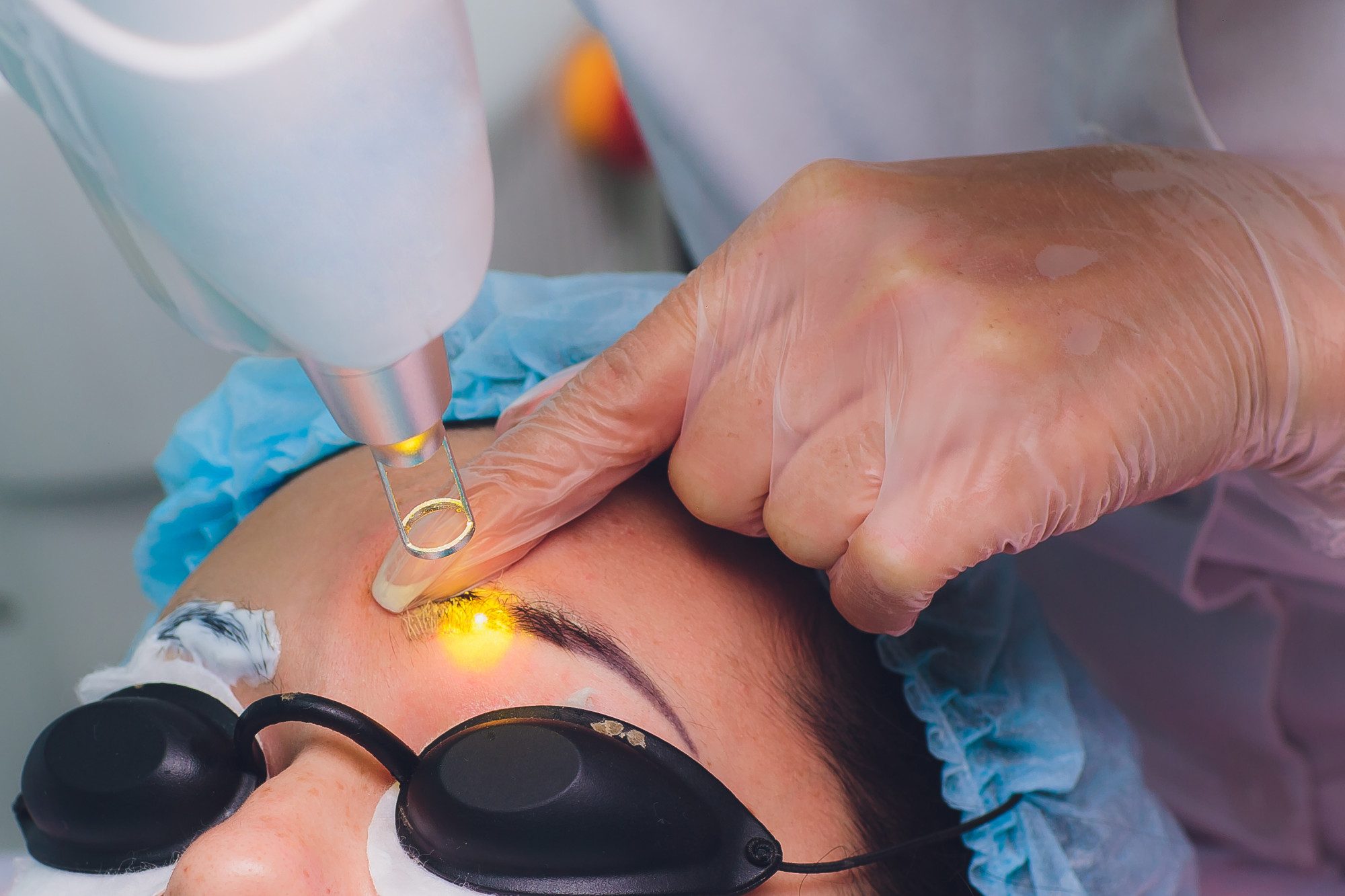 3. Laser Session: The laser will emit ultra-short pulses of energy to burn away and break down ink particles into smaller fragments. The heat delivered by each laser pulse causes the ink to fragment without damaging surrounding tissue. You may feel a tingling sensation or a spark-like snap — often compared to a thin rubber band being flicked against the skin. For permanent makeup removal on the face, laser settings are carefully calibrated to target cosmetic pigment while protecting delicate facial skin.